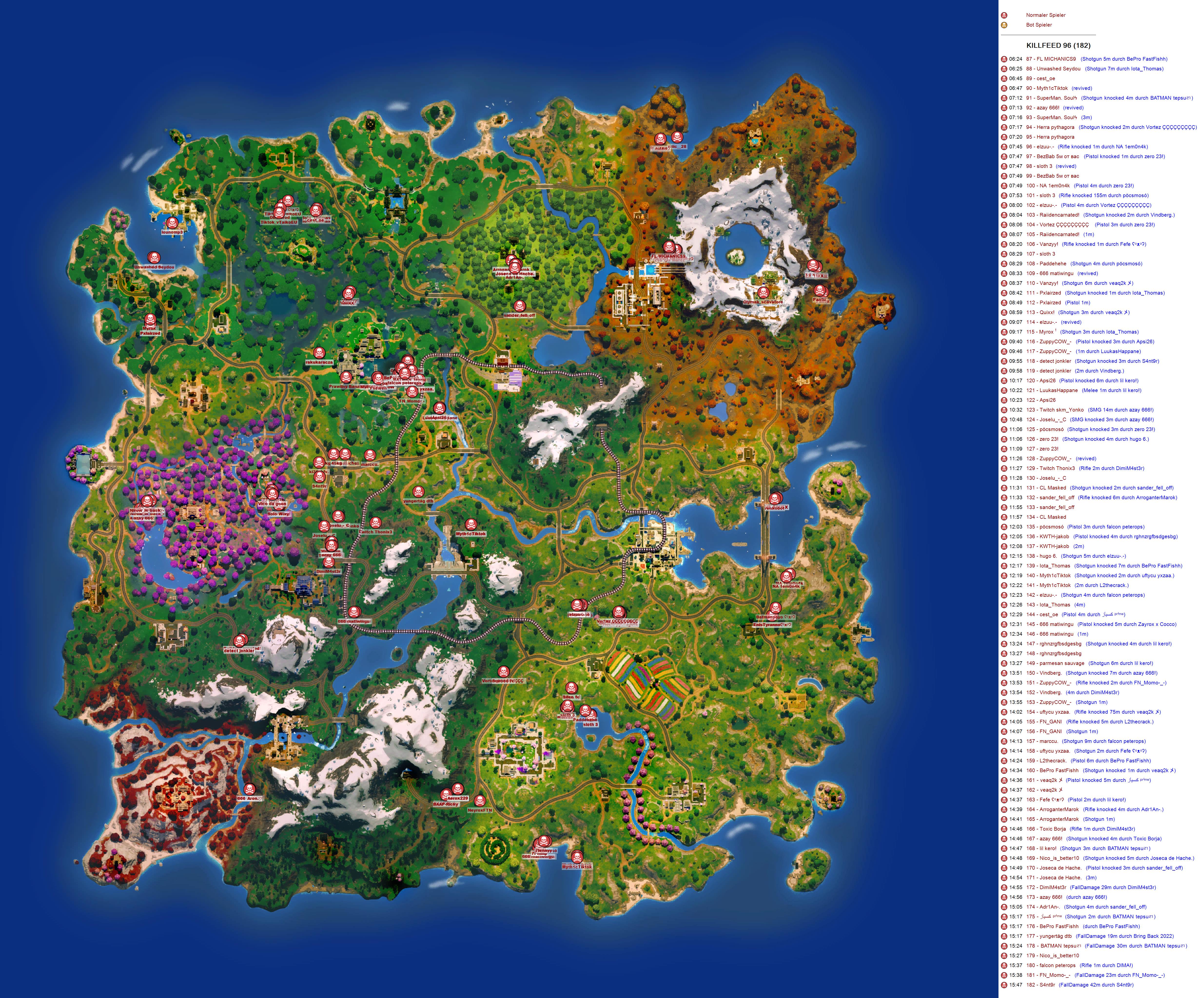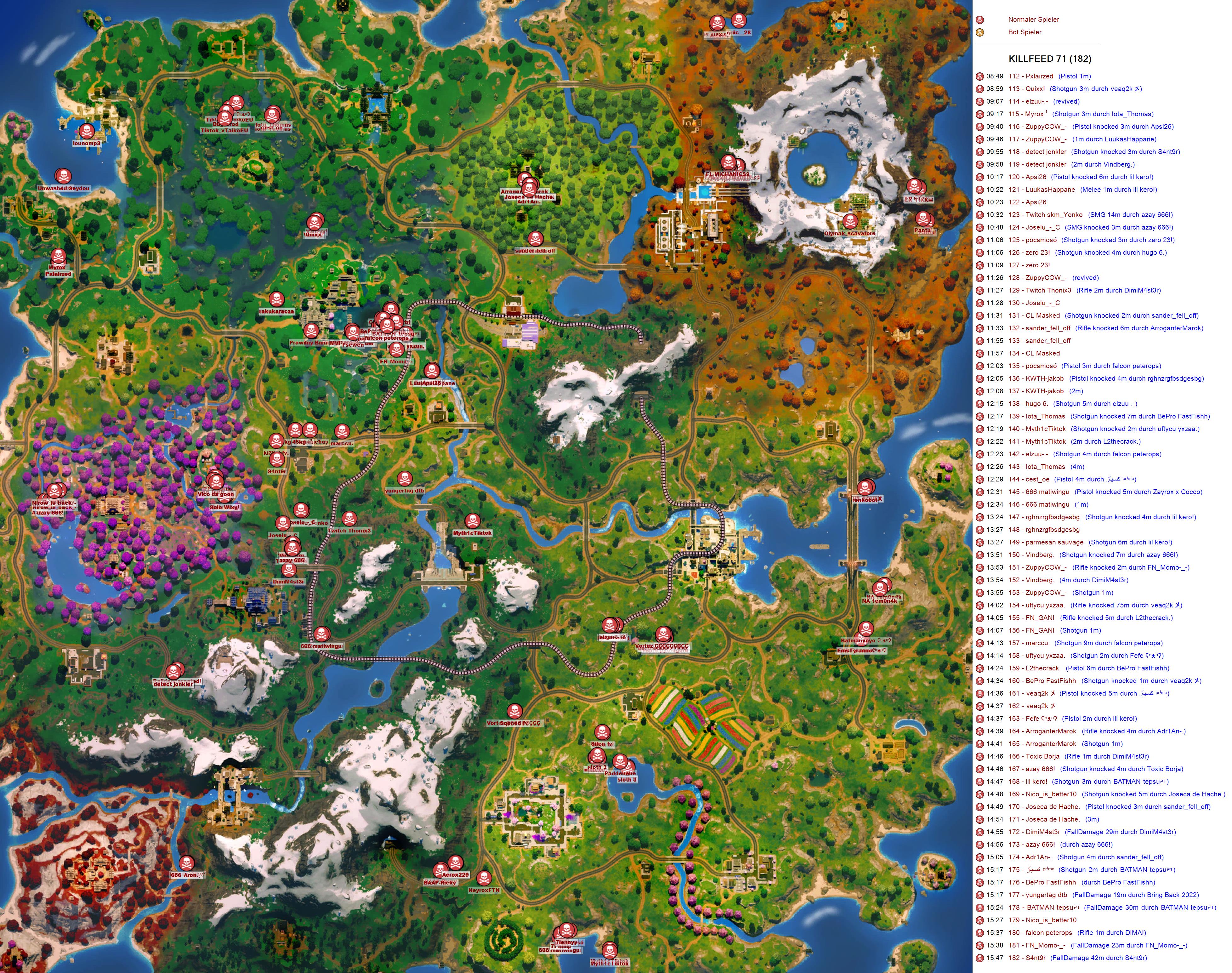 | SPIELER / EPICID | LEVEL | KILLS | PLATZ | PLATTFORM | REBOOT | DANKE | ANONYM | TOD | ZEIT GELEBT | SKIN GLEITER PICKAXE |