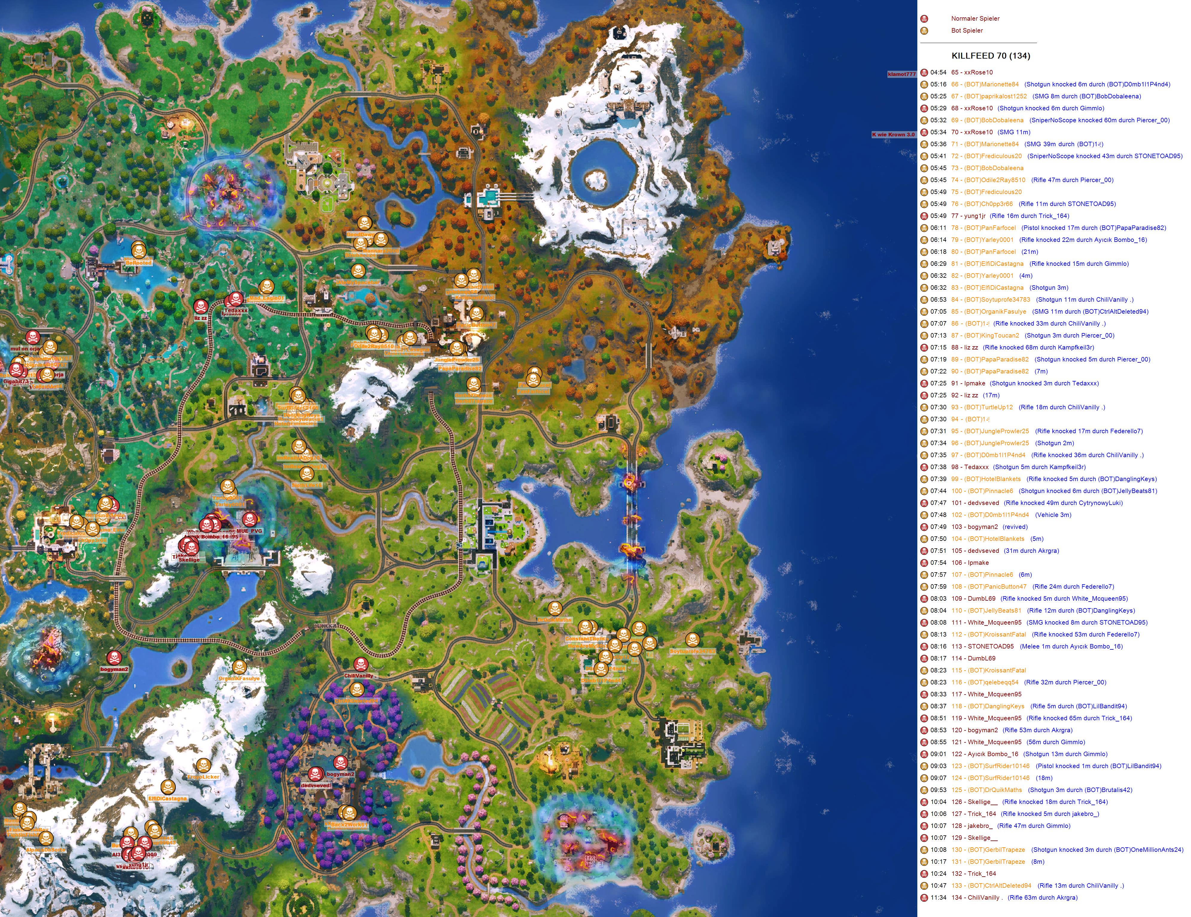 | SPIELER / EPICID | LEVEL | KILLS | PLATZ | PLATTFORM | REBOOT | DANKE | ANONYM | TOD | ZEIT GELEBT | SKIN GLEITER PICKAXE |
