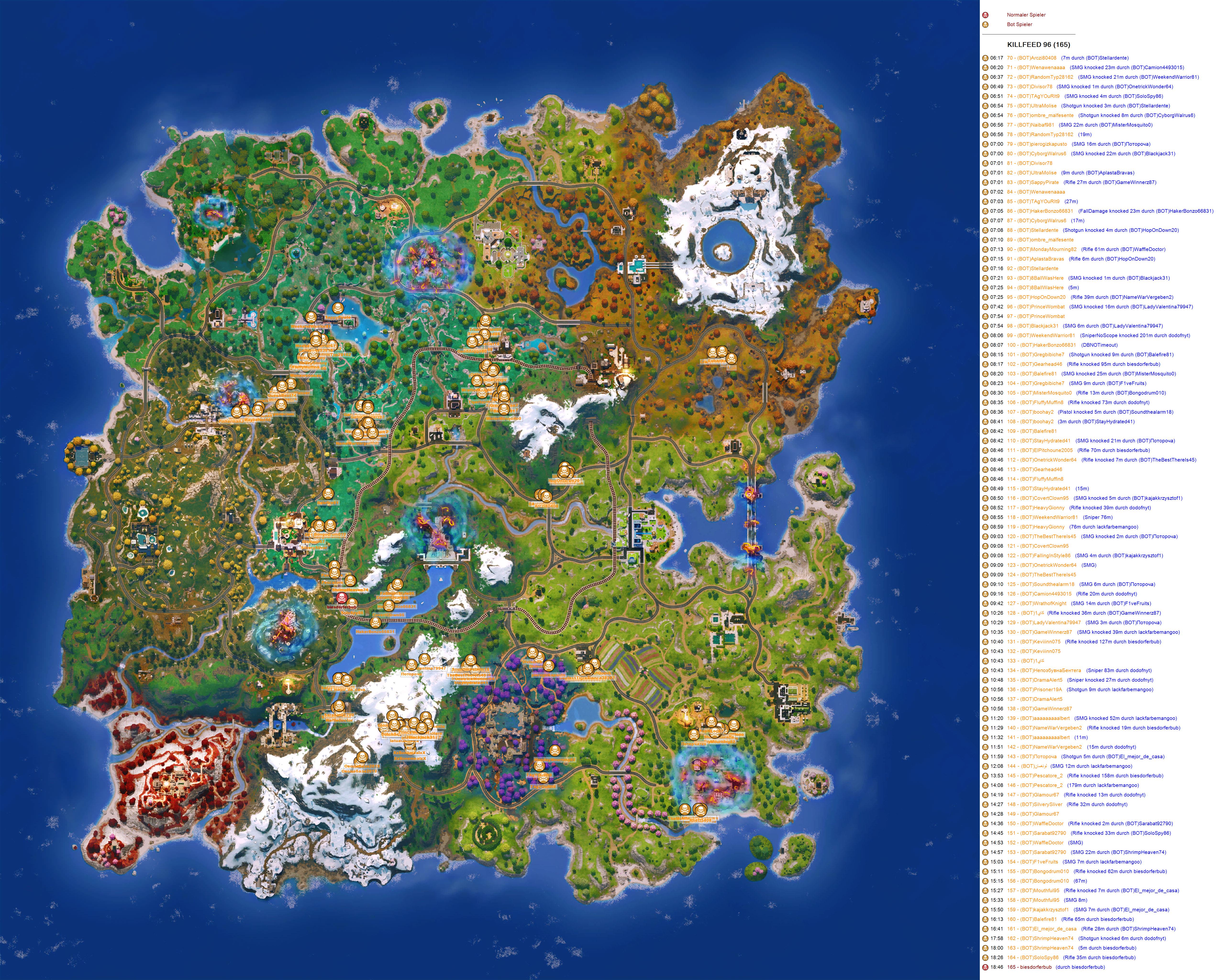 | SPIELER / EPICID | LEVEL | KILLS | PLATZ | PLATTFORM | REBOOT | DANKE | ANONYM | TOD | ZEIT GELEBT | SKIN GLEITER PICKAXE |