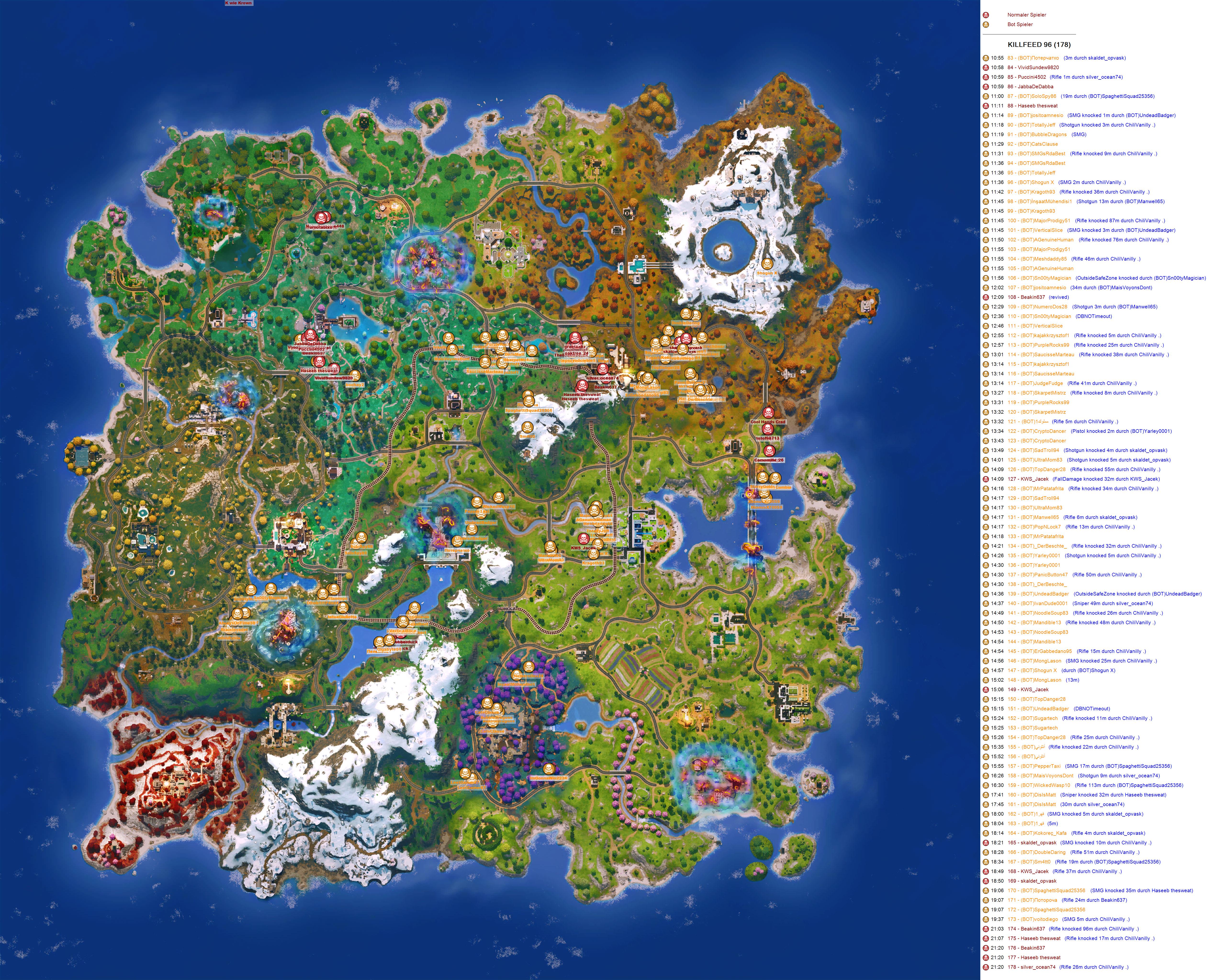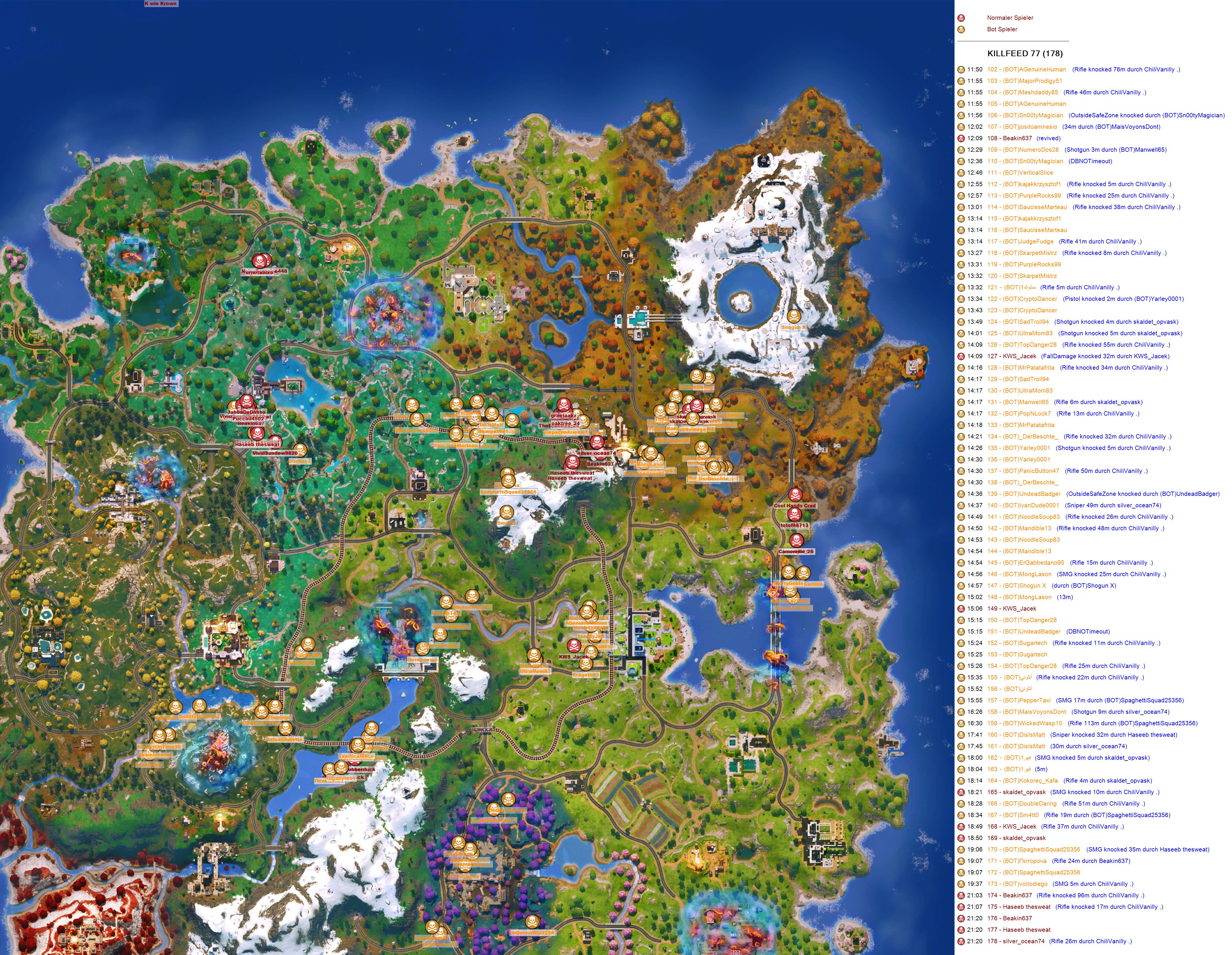 | SPIELER / EPICID | LEVEL | KILLS | PLATZ | PLATTFORM | REBOOT | DANKE | ANONYM | TOD | ZEIT GELEBT | SKIN GLEITER PICKAXE |
